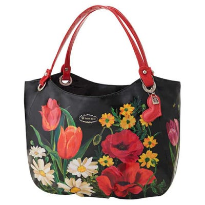 黒地に溢れんばかりのお花で大人可愛いのが気に入ってます。間口が広いので、中が見やすく入れやすい分、置いただけで中が見えるので使い込めば少しは柔らかくなるかな?