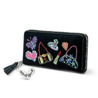 黒地にバッグや香水の可愛い💕刺繍やカラフルなレインボーファスナーが素敵✨✨