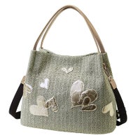 カゴバックのイメージでありながら、手に持ったり肩がけできたり使い勝手もよさそうだし、可愛いハートが付いてるのにさりげなく見えて大人の雰囲気です。